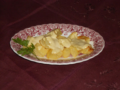 Para terminar basta con verter la salsa sobre las patatas y ya están listas para degustar.