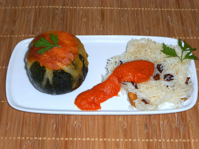 Yo, en este caso lo he acompañado con un arroz basmati con pasas y piñones. Vosotros lo podéis acompañar con lo que más os guste.